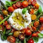 This Asparagus Tomato Salad with Burrata Cheese is a refreshing and elegant dish that celebrates the crisp crunch of asparagus paired with juicy tomatoes and the creamy richness of burrata, making it perfect for a light summer meal or a sophisticated side. The combination of fresh ingredients and simple preparation highlights the natural flavors, creating a balanced and vibrant taste that’s both healthy and indulgent. For a fun variation, try swapping the burrata for mozzarella in a similar recipe like the Baked Marinated Chicken Salad with Mozzarella and Balsamic Vinaigrette, or explore another cheese-forward option such as the Steak Caprese with Balsamic Glaze to elevate your next gathering.