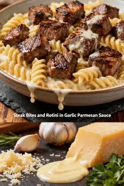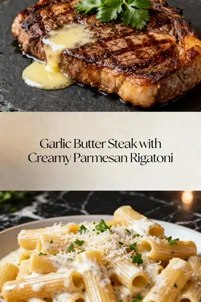 Garlic Butter Steak with Creamy Parmesan Rigatoni