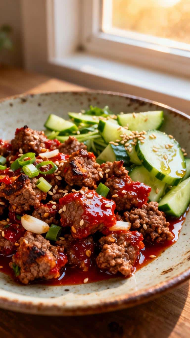 Quick Spicy Korean Beef with Cucumber Salad