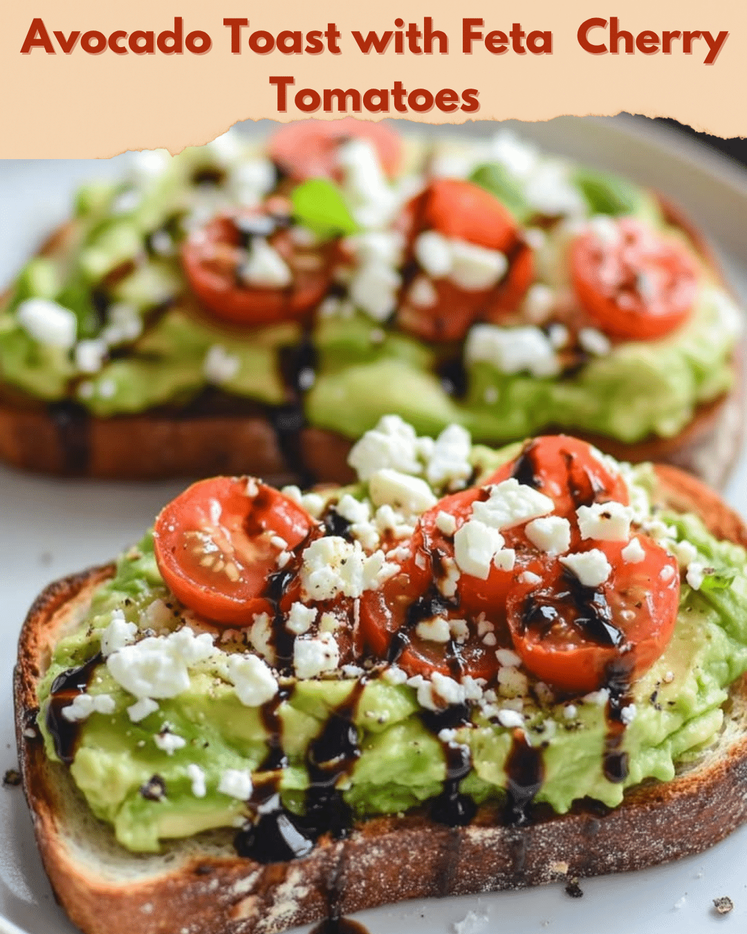 A delightful toast topped with creamy avocado, tangy feta cheese, and juicy cherry tomatoes.