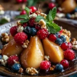 Unbeatable Texture: The science behind the texture here comes from the high water content in ripe pears, which softens gently in the oven at 375°F, preventing them from becoming mushy. The walnuts add a crunchy element due to their oil content, which toasts lightly without burning, while the berries release natural juices that mingle with the honey for a glossy finish. This combination guarantees a multi-layered mouthfeel that’s both satisfying and sophisticated.