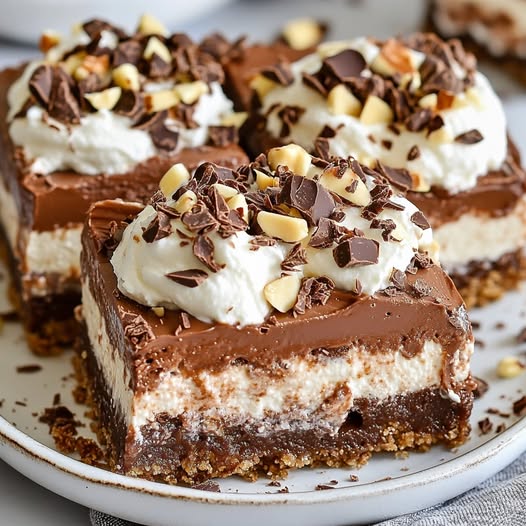 Once the cheesecake has chilled completely, remove it from the refrigerator. Lift the cheesecake from the pan using the plastic wrap overhang. Cut into bars using a sharp knife. For clean cuts, dip the knife into warm water and wipe it clean between each slice. Optional: Dust the bars with cocoa powder or drizzle with extra Nutella before serving. A sprinkle of chopped hazelnuts is also a lovely garnish.