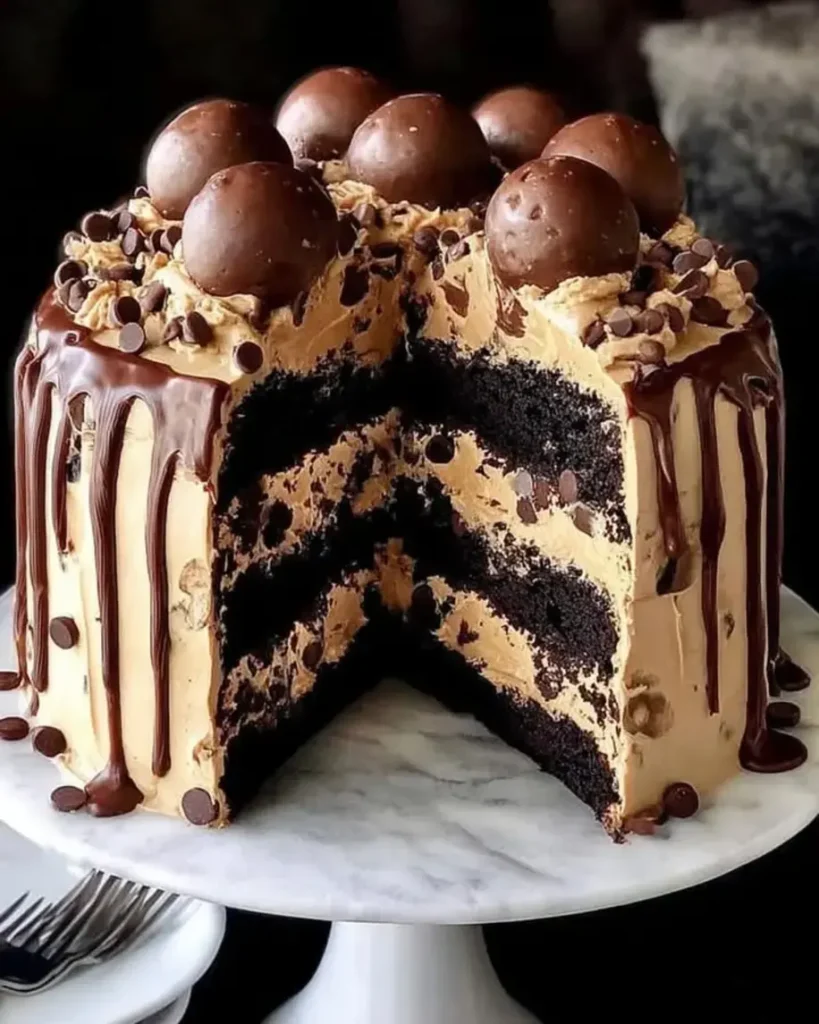 Ultimate Chocolate Chip Cookie Dough Brownie Bomb Cake