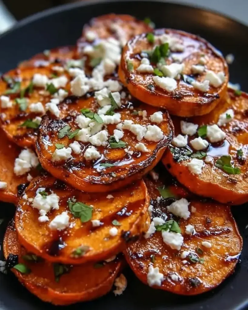 Delicious Roasted Sweet Potato Rounds with Honey and Feta