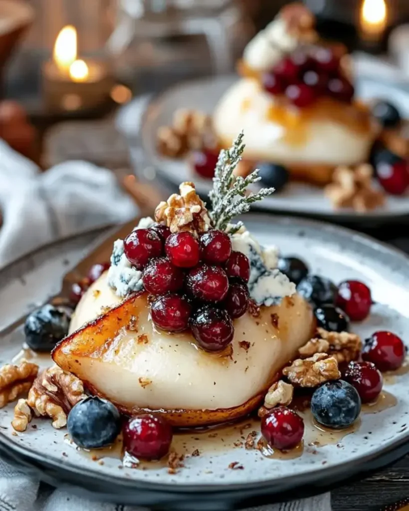 Baked Pears with Honey, Walnuts, and Blue Cheese