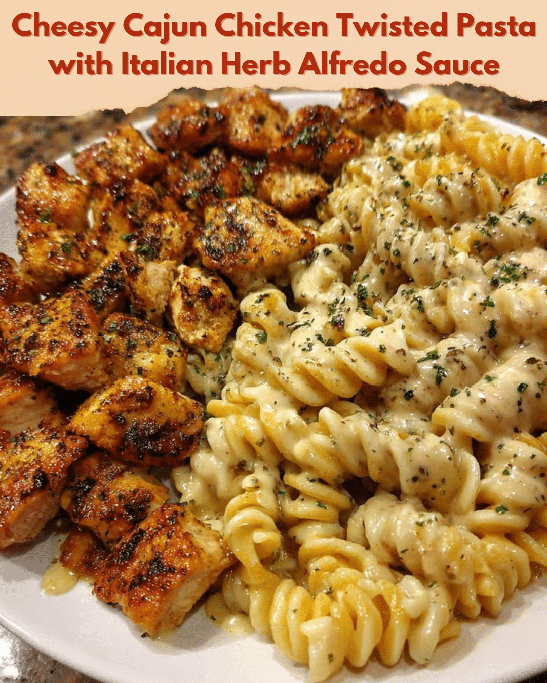 Cheesy Cajun Chicken Twisted Pasta with Italian Herb Alfredo Sauce: A Flavorful Culinary Delight