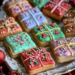 For serving Christmas Presents Cookies at a holiday party, arrange them on a tiered platter with other treats like chocolate truffles for a visually appealing display. Pair with beverages such as eggnog or coffee to complement their buttery sweetness, and consider thematic additions like placing them in gift boxes as favors. They’re perfect for dessert tables or as a fun activity for kids to decorate on-site, enhancing the festive vibe.