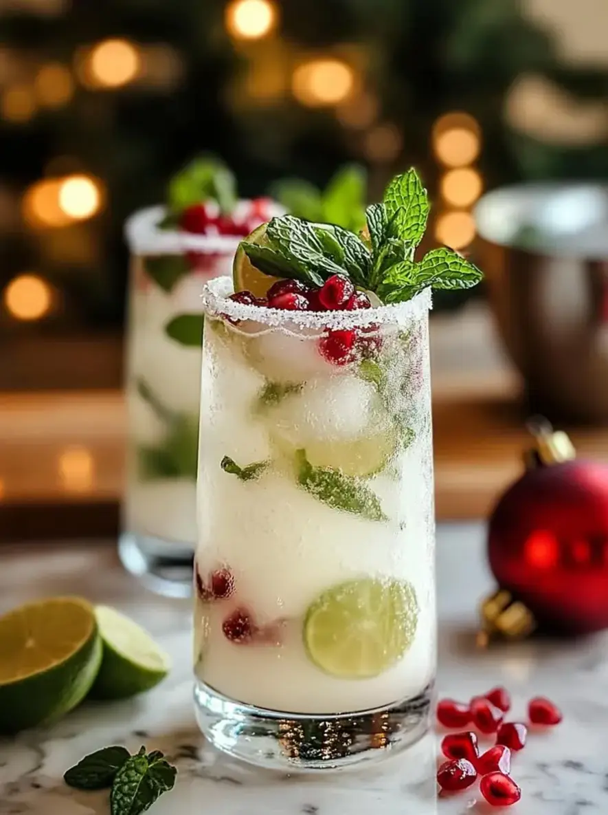 Sparkling water tops off the mocktail with effervescence in this Coconut Snow Mint Mojito Mocktail, adding a festive fizz that mimics champagne. Choose unflavored, high-quality brands for the best bubbles. Still water isn’t a great sub, but soda water could work if you’re aiming for extra tang—adjust quantities to keep the drink’s signature lightness.