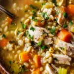 The aroma of Cozy Chicken Barley Soup Your Next Favorite Comfort Food fills your kitchen with an inviting blend of earthy thyme and savory chicken, instantly evoking memories of grandma’s cooking. Each bite delivers a delightful contrast of textures: the tender, juicy chicken pieces mingle with the slightly chewy barley, while the carrots and celery add a crisp freshness that balances the rich broth. The flavors are robust yet balanced—subtle herbs enhance the natural sweetness of the vegetables, creating a symphony of tastes that warms you from the inside out. It’s not just soup; it’s a comforting hug in a bowl.
