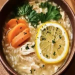This Cozy Lemon Chicken Rice Soup The Ultimate Comfort in a Bowl bursts with layers of flavor and texture that make every bowl irresistible. Picture the tender bite of juicy chicken breast, harmonizing with the soft, fluffy grains of rice that absorb the rich, savory broth. The lemon’s bright acidity cuts through, adding a refreshing zing that awakens your senses, while the aromatic onions, carrots, and celery create a base that’s both hearty and wholesome. The steam rises with hints of garlic and fresh herbs, filling your kitchen with an inviting aroma that promises pure comfort. It’s not just soup; it’s a sensory experience that leaves you feeling nourished and content.