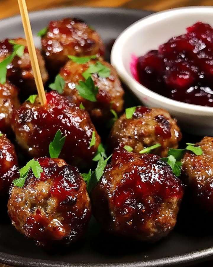 Sweet and savory meatballs simmered in a tangy cranberry glaze, perfect for a cozy appetizer or a simple main course.