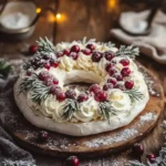 For a Cranberry Vanilla Bean Pavlova Wreith that’s as visually stunning as it is tasty, focus on creative plating to make it the centerpiece of your holiday table. Arrange fresh mint leaves or edible flowers around the wreath for a pop of color, enhancing its festive appeal. Serve it on a large, decorative platter to highlight the wreath shape, and consider adding a dusting of powdered sugar for an extra touch of elegance. This dessert pairs beautifully with light main courses like roasted turkey or ham, as its refreshing tartness from the cranberries balances richer flavors, making it ideal for holiday feasts.