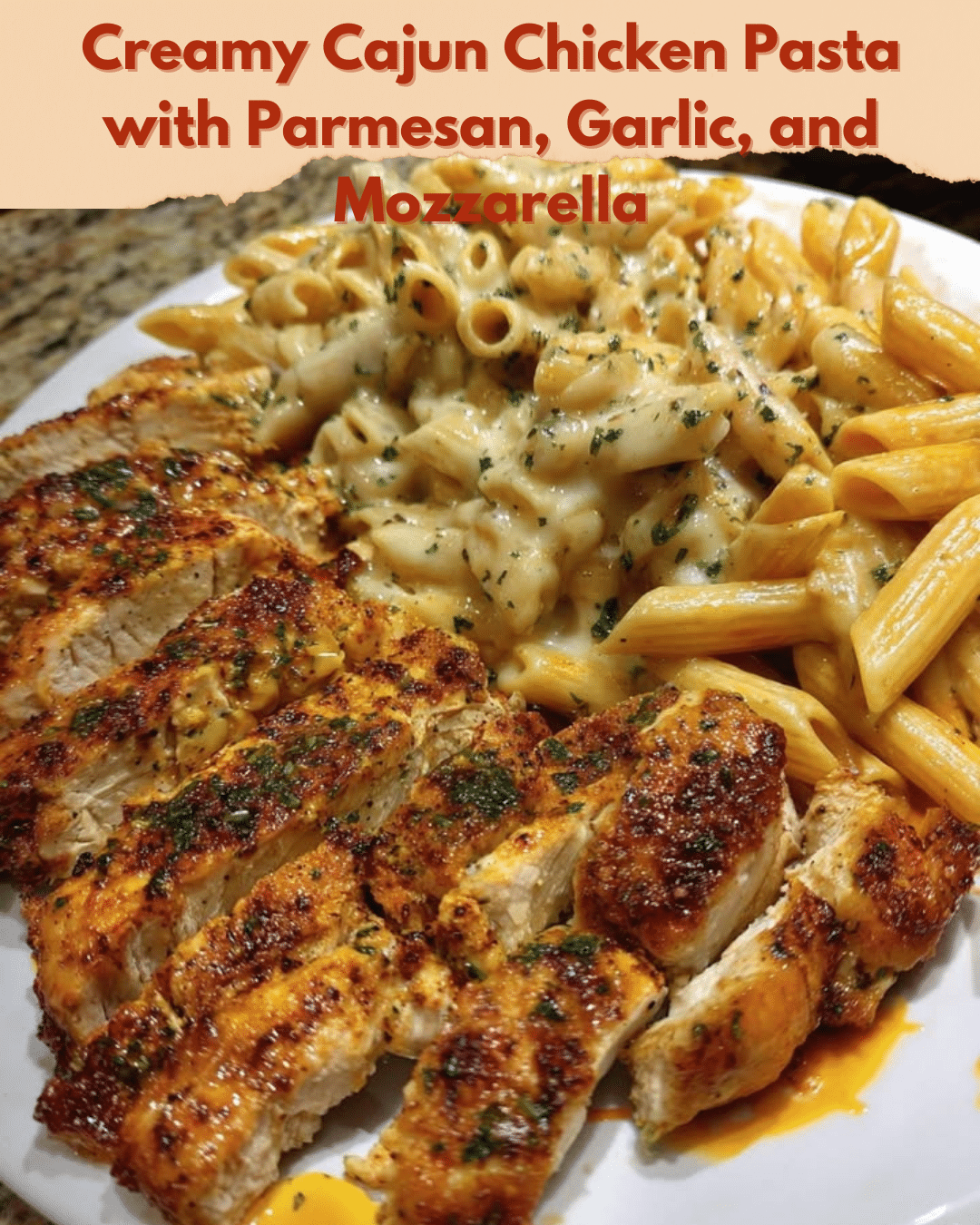 Creamy Cajun Chicken Pasta with Parmesan, Garlic, and Mozzarella