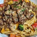This Creamy Steak Bites Veggie Alfredo Linguine delivers a rich, indulgent blend of tender steak, fresh vegetables, and a velvety Alfredo sauce, making it the perfect comfort food for busy weeknights or special occasions. For an extra touch, serve it with a sprinkle of Parmesan cheese and a side of crusty bread to soak up every last bite, or experiment by adding mushrooms for a heartier variation. If you’re looking for more delicious beef and creamy pasta ideas, be sure to try Savory Creamy Beef Linguine with Garlic Butter Sauce, Creamy Mozzarella Beef Rigatoni in Garlic Herb Sauce, or Creamy Cheesy Steak Bites Spinach Tortellini.