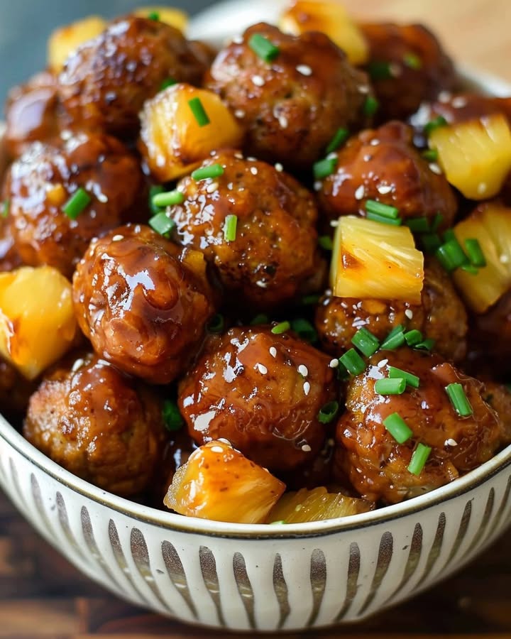 The concept of sweet-and-sour meatballs traces back to mid-20th century America when home cooks began experimenting with canned pineapple in savory dishes. Hawaiian pizza’s popularity in the 1960s inspired similar tropical flavor combinations with other foods. This recipe represents that cultural fusion tradition.