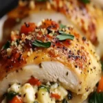 For an impressive presentation of your Stuffed Chicken Recipe Easy Healthy Flavorful, slice the chicken at an angle to reveal the colorful spinach and feta stuffing, creating an eye-catching display on the plate. Garnish with fresh herbs like parsley or a sprinkle of lemon zest to add a bright, zesty pop that enhances the Mediterranean flavors. Pair this dish with complementary sides such as a quinoa salad for added protein and fiber, roasted vegetables like zucchini or bell peppers for a nutritious balance, or a light couscous to soak up the juices. This combination not only boosts the meal’s visual appeal but also ensures a well-rounded, flavorful stuffed chicken experience that’s perfect for family dinners or entertaining guests.