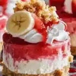 These Easy No Bake Mini Strawberry Banana Cheesecakes are a refreshing and creamy delight that perfectly blend the sweet tartness of strawberries with the smooth flavor of bananas, making them an ideal no-fuss dessert for summer gatherings or weeknight treats. Not only are they simple to prepare without any baking required, but they also offer a light and fruity option that will satisfy your cheesecake cravings in no time. For a fun variation, try topping them with whipped cream and fresh fruit, or explore similar recipes like the Easy Banana Pudding Crunch Cheesecake for another banana-inspired twist, or the Easy Banana Split Ice Cream Cake Recipe if you’re in the mood for a cool, ice cream-based alternative.