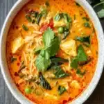 What makes this Thai red curry soup recipe easy spicy full of flavor truly irresistible is the symphony of textures and tastes that dance on your palate. The creamy coconut milk blends seamlessly with the fiery red curry paste, creating a velvety base that’s rich and soothing, while the fresh vegetables and tender chicken add a satisfying crunch and protein punch. Aromas of lime and cilantro waft through the air, promising a burst of freshness that cuts through the spice, making each bowl a comforting yet adventurous experience. It’s the kind of soup that warms you from the inside out, with just the right kick to awaken your senses.
