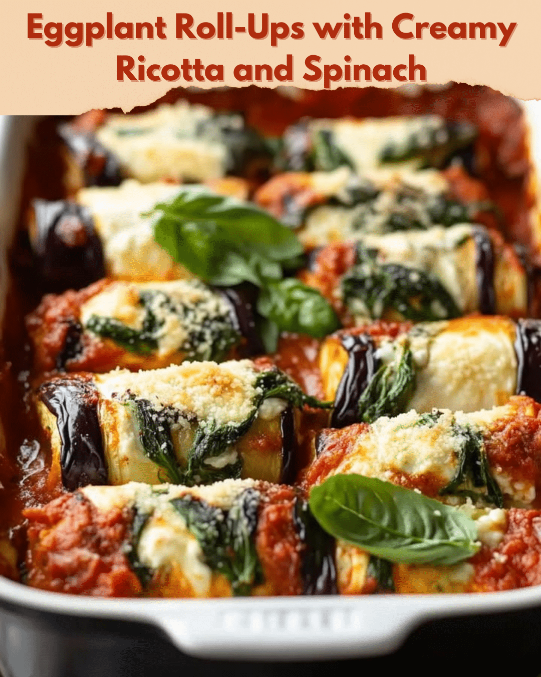 These eggplant roll-ups feature tender slices of eggplant filled with a creamy ricotta and spinach mixture, baked to perfection.