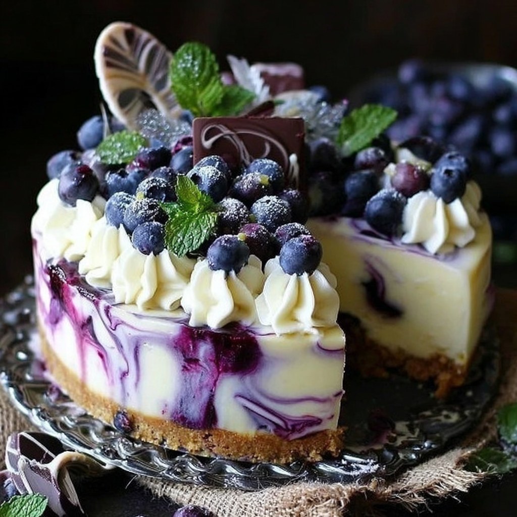 The scent of this cheesecake is as captivating as its appearance. As it bakes, your kitchen fills with the delicate aroma of vanilla and chocolate, punctuated by the fruity essence of blueberries. Cut into a slice, and you’re greeted with layers of texture—creamy filling, a buttery crust, and just the right amount of fruity swirl. It’s more than dessert; it’s an experience that engages all your senses.