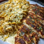 The moment you take your first bite of this Garlic Butter Chicken Spaghetti with Creamy Three-Cheese Cheddar Sauce, you’ll be enveloped in a symphony of flavors and textures that dance on your palate. The chicken emerges juicy and golden, perfectly seared in garlic butter, while the three-cheese cheddar sauce—featuring sharp cheddar, nutty Parmesan, and gooey mozzarella—creates an extra creamy coating that’s rich and indulgent. Picture the pasta strands slick with sauce, offering a delightful contrast between the slight al dente bite of the spaghetti and the smooth, melted cheese that melts in your mouth. Aromas of freshly minced garlic waft through the air, mingling with the buttery essence, promising a dish that’s as visually appealing as it is delicious.