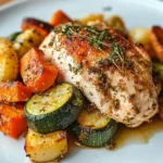 The aroma of Garlic Herb Roasted Chicken with Vegetables fills your kitchen, hinting at the savory garlic notes mingled with the earthy essence of rosemary and thyme. Each bite offers a delightful contrast of textures: the chicken’s succulent meat falls off the bone, while the vegetables—carrots, potatoes, and onions—roast to a caramelized perfection, their natural sugars intensifying for a subtle sweetness. The herbs infuse every layer, creating a symphony of flavors that’s both robust and refreshing, with a light crispiness on the skin that makes this one-pan roasted chicken recipe irresistible. Picture the golden-brown chicken glistening with herb-infused oils, paired with veggies that are fork-tender yet slightly charred, elevating your meal to restaurant-quality status right at home.
