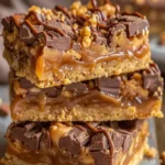Decadent bars featuring layers of gooey caramel, rich chocolate, and a crunchy texture for a perfect dessert.