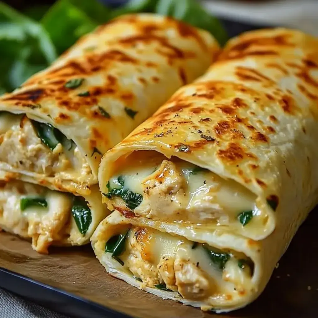 These wraps feature tender chicken infused with garlic, melted cheese, and wrapped in a soft tortilla for a fast, flavorful meal.
