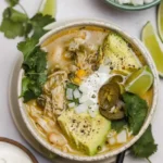 Present your Green Chicken Chili Soup in colorful bowls for a visually appealing meal, garnishing with fresh lime wedges to add a zesty brightness that cuts through the richness. The soup’s vibrant green hues from the spinach and chilies make it naturally photogenic, so arrange it with a sprinkle of chopped cilantro or a dollop of sour cream for extra flair. For a family meal, pair it with warm cornbread or tortilla chips to soak up the flavorful broth, turning it into a complete, satisfying dinner. This combination not only complements the soup’s hearty flavors but also adds a fun, interactive element for kids.