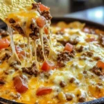 The aroma of sizzling ground beef mingled with spices fills the air, creating an irresistible invitation to dig in. This Ground Beef Queso Dip boasts a velvety texture from the melted cheddar, balanced by the slight crunch of diced onions and the fresh tang of tomatoes with green chilies. Each scoop delivers a harmonious blend of creamy cheese, hearty beef, and a subtle kick from chili powder and cumin, making it the ultimate cheesy dip that’s both comforting and exciting. Serve it with crisp tortilla chips, and you’ll experience the perfect contrast of warm, gooey goodness against the cool, salty crunch.
