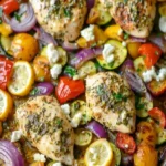 This easy sheet pan dinner features juicy chicken with fresh herbs, tangy feta, and bright lemon flavors, making it a flavorful weeknight meal.
