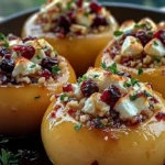 Finally, the 2 tablespoons chopped walnuts (optional): Walnuts provide a nutty crunch that complements the soft apples in this Honey-Baked Apples with Feta and Cranberries recipe, adding healthy fats and texture variety. Choose fresh, unsalted walnuts for the best taste and crunch—roasting them lightly before adding intensifies their flavor. If allergic or avoiding nuts, substitute with pumpkin seeds for a similar crunch, ensuring they’re chopped fine to blend seamlessly without altering the dish’s signature balance.