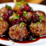 To make your Cranberry Meatballs truly stand out, arrange them on a festive platter with a drizzle of extra tangy cranberry glaze for a visually appealing shine. Garnish with fresh herbs like parsley or chives to add a pop of color and freshness, enhancing the overall presentation for parties or appetizers. For complementary side dishes, pair these meatballs with crisp vegetable crudités, such as carrot sticks and celery, to balance the richness, or serve alongside a light salad for a refreshing contrast. As an American-style appetizer, they shine with cheese platters or even as part of a charcuterie board, where the tangy cranberry notes cut through heavier items.