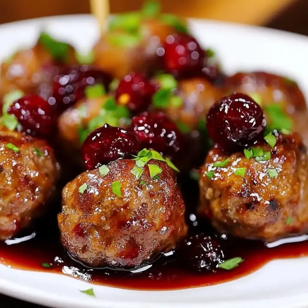 Delicious meatballs in a tangy cranberry sauce, perfect for appetizers or parties.