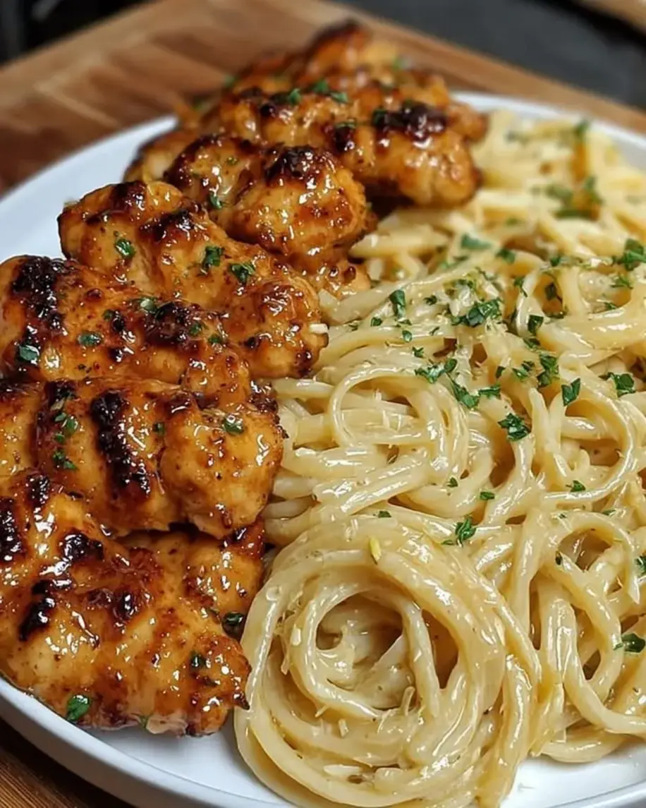 Lemon Garlic Butter Chicken with Creamy Parmesan Pasta