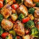 The aroma of sizzling chicken and fresh vegetables fills your kitchen, creating an inviting scent that promises a wholesome feast. Picture juicy, perfectly seasoned chicken breast cubes mingling with vibrant broccoli florets, tender zucchini slices, and sweet red bell pepper chunks—all cooked to retain their natural crunch and vibrant colors. Each bite offers a delightful contrast of textures: the slight char on the chicken for a smoky edge, the crisp-tender veggies that pop with freshness, and a subtle garlic undertone that ties everything together without overwhelming the palate. This One Pot Chicken Veggies Skillet Easy Healthy Low Carb recipe isn’t just about eating healthy; it’s about enjoying a meal that’s bursting with earthy flavors, making every forkful a reminder of how delicious low-carb eating can be.