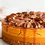 A decadent dessert combining the flavors of pecan pie and pumpkin cheesecake into a creamy, nutty treat.