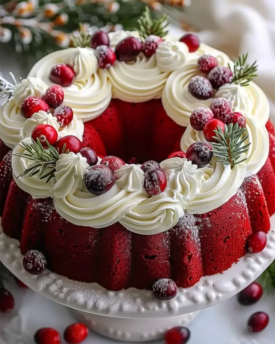 The Chef’s Secret: This red velvet wreath cake achieves an exceptionally moist texture through a precise balance of vegetable oil and buttermilk, which keeps the cake tender without drying out. Unlike traditional recipes that rely solely on butter, this method incorporates oil for better moisture retention, ensuring each bite is soft and flavorful even days later. This unique angle makes it ideal for holiday prep, as the cake stays fresh and doesn’t crumble when sliced.