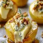The aroma of Roasted Pears with Blue Cheese Honey The Ultimate Sweet Savory Treat fills your kitchen with an irresistible blend of warm, caramel-like sweetness from the honey-kissed pears and the pungent, earthy tang of melting blue cheese. Each pear half emerges from the oven tender yet slightly firm, offering a delightful contrast in textures—soft, juicy insides giving way to a lightly crisped exterior. The honey creates a glossy, golden drizzle that adds a sticky sweetness, while the blue cheese melts into creamy pockets, balancing the fruit’s natural sugars with a bold, savory kick. Every bite is a symphony of flavors: the subtle nuttiness of roasted pears, the sharp creaminess of cheese, and the floral notes of honey, making this dish as visually appealing as it is delicious.