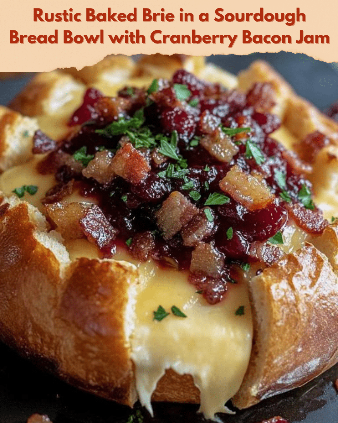 Rustic Baked Brie in a Sourdough Bread Bowl with Cranberry Bacon Jam: A Decadent Delight