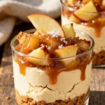 Indulgent cheesecake cups combining apple pie flavors with salted caramel.