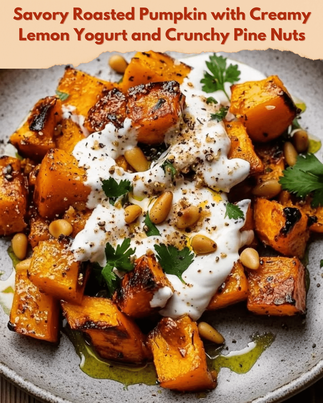 Savory Roasted Pumpkin with Creamy Lemon Yogurt and Crunchy Pine Nuts: A Delightful Autumn Treat