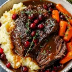 The aromas alone will draw everyone to the kitchen—the slow-braising process fills the air with the hearty scent of seared beef mingled with the tangy zest of cranberries and the deep, woody notes of balsamic vinegar. Each slice of the beef reveals a perfectly tender texture, where the meat falls apart effortlessly, contrasted by the glossy, vibrant glaze that adds a glossy sheen and a burst of sweetness with every bite. The flavors dance on the palate: the savory depth of the beef broth-infused roast pairs beautifully with the tartness of cranberries, balanced by the mellow acidity of balsamic, creating a symphony of tastes that feels both comforting and refined.
