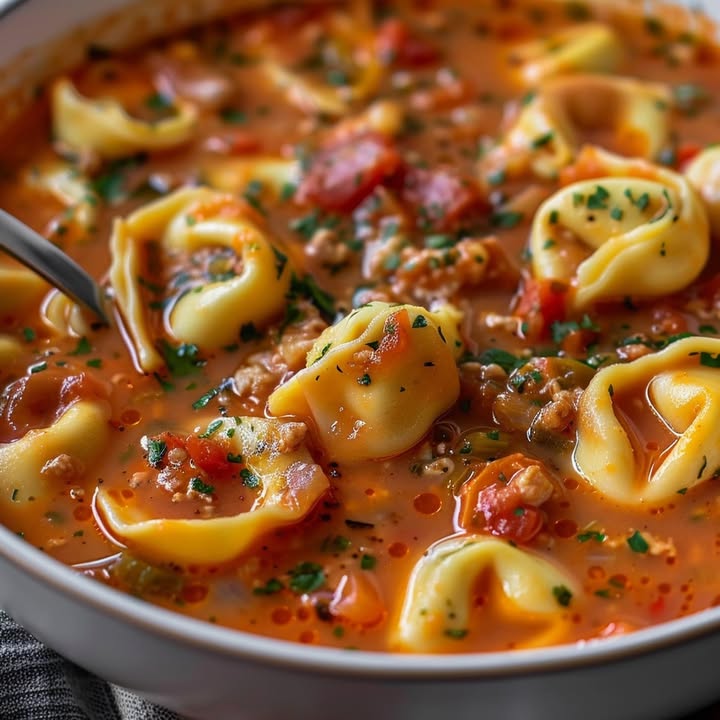 A comforting and easy soup featuring cheese tortellini in a rich, herb-infused tomato broth, all made effortlessly in your slow cooker.