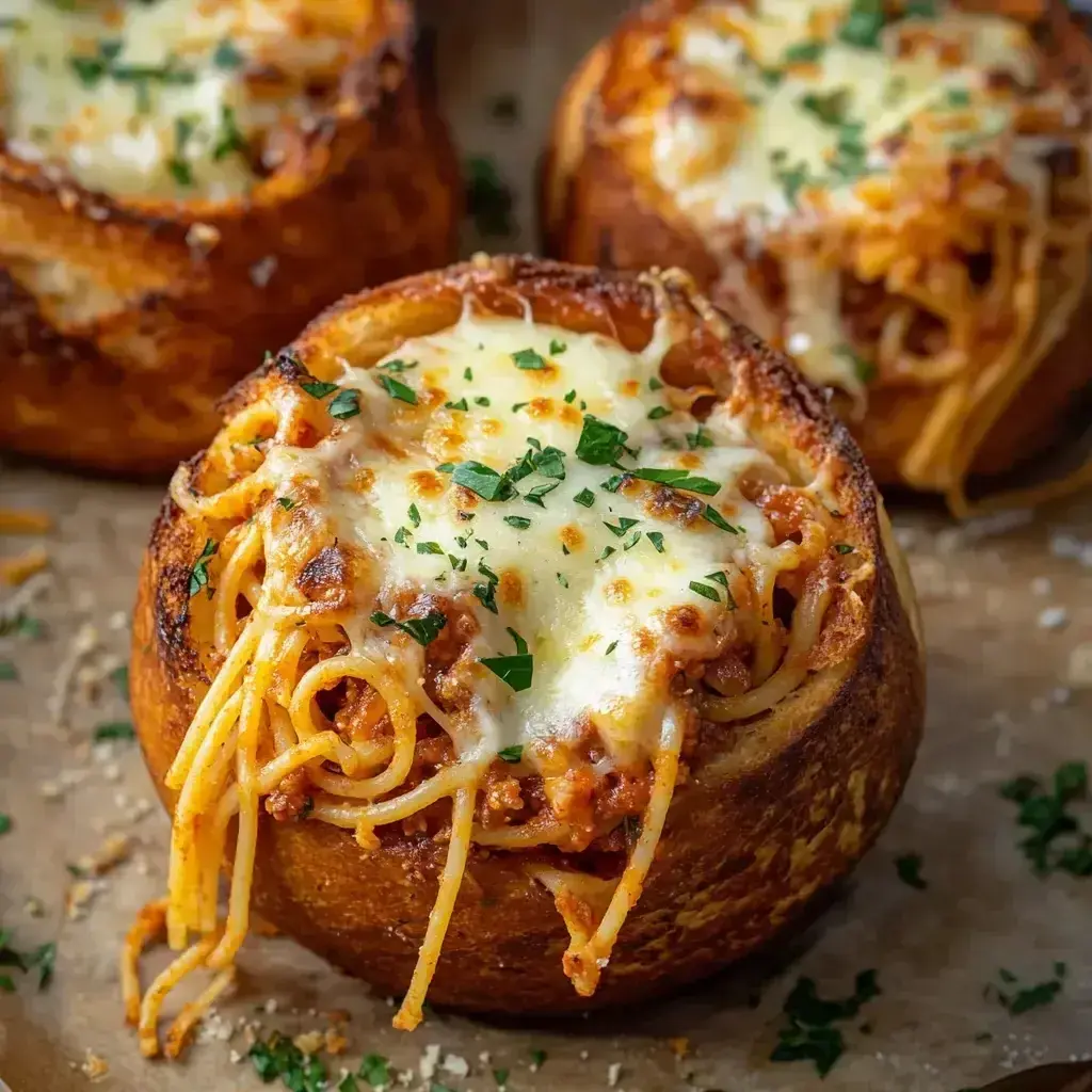 Make-Ahead Strategy: Prepare the spaghetti and beef mixture up to 3 days in advance by cooking, cooling, and storing them separately in airtight containers in the refrigerator. Assemble the bread bowls just before baking to maintain their crunch—prep the garlic butter mixture a day ahead and store it in the fridge, then brush it on fresh.