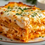 This Buffalo Chicken Lasagna is a spicy, cheesy twist on traditional lasagna, featuring layers of tender chicken, buffalo sauce, and melted cheese for the perfect dinner.