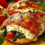 The Spinach and Mozzarella Stuffed Chicken Recipe for Dinner tantalizes the senses with its rich aromas of garlic and olive oil wafting from the skillet, creating an irresistible invitation to the table. Picture the satisfying crunch of the golden-brown sear giving way to a warm, creamy filling of fresh spinach and melted mozzarella that stretches with every bite. The textures play off each other beautifully—the crisp outer layer contrasts with the soft, succulent chicken and the velvety cheese, while the flavors meld into a harmonious blend of earthy greens, sharp garlic, and mild, gooey cheese. It’s a dish that feels indulgent yet balanced, with each mouthful delivering a comforting warmth that makes dinner feel like a treat.