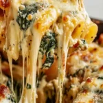 Sink your fork into the golden, bubbly top layer of melted cheeses that give way to tender pasta enveloped in a rich, creamy ricotta mixture. The fresh spinach brings a vibrant, earthy freshness that contrasts beautifully with the smooth, velvety texture of the ricotta, while hints of garlic add a subtle aromatic punch. Every bite is a symphony of flavors: the sharpness of Parmesan mingling with the mild mozzarella, creating a cheesy pasta bake that’s irresistibly gooey and satisfying. The scents wafting from the oven—garlic-infused warmth mixed with melted cheese—will have your family rushing to the table, eager for that first comforting spoonful.