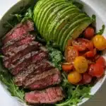 Unbeatable Texture: The combination of grilled flank steak and creamy avocado creates a textural masterpiece. The steak’s juicy, slightly chewy interior pairs with avocado’s smooth creaminess, while quinoa adds a fluffy, absorbent element. Scientifically, the proteins in the steak firm up during grilling, and the healthy fats in avocado prevent the bowl from feeling heavy, resulting in a light yet satisfying meal that keeps you full longer.