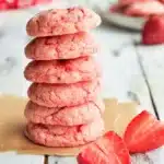 Soft and chewy cookies infused with fresh strawberries, perfect for a sweet treat.